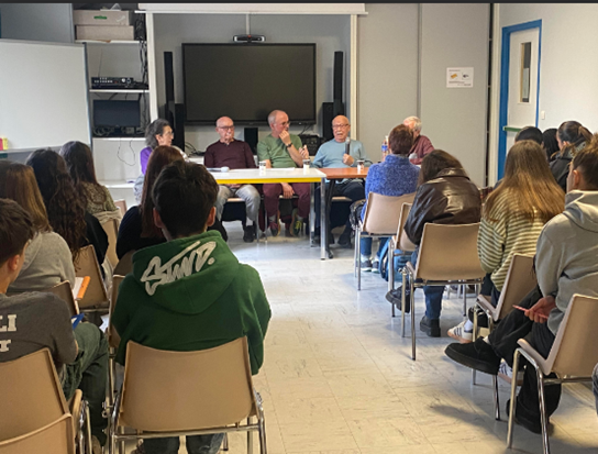 Cette intervention est complétée par une présentation plus historique et politique sur les conditions d’accueil réservées aux exilés républicains espagnols par le France, menée par M. Hélaudais, enseignant d’Histoire-Géographie à la Cité Scolaire.
